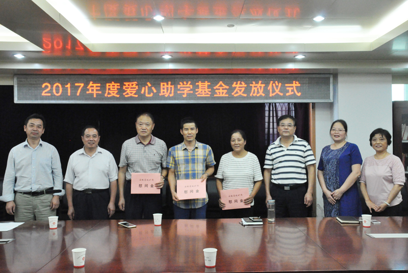9月18日,省地质工会主席王宁川、省地矿局党委工作部副部长汪杰来到我队,为我队今年考上大学的困难职工家庭学子送来了省总工会职工互助保障爱心助学款和省地质工会爱心助学款。队长娄尤华、队党委书记方招信、队纪委书记陈勇一同参加此次活动。