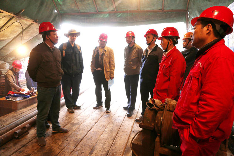 开工前项目负责人蔡晓兵给钻机作业人员进行安全质量技术交底,队安全探矿科副科长吴志刚、岩土公司副总经理武长民、钻探工程处经理吴邦俊针对冬季野外施工作出了具体的要求和安排,并预祝项目顺利完成。
