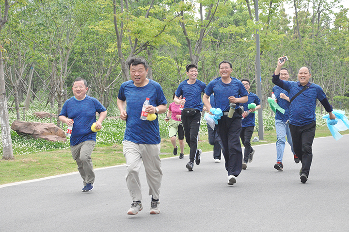 队长娄尤华为比赛活动发令。队工会副主席祝文华在赛前讲话中对活动注意事项做了强调。活动以南艳湖公园东门为起点,沿湖岸主干道绕湖两圈,健身行走(跑)约10公里。一路上彩旗招展,大家斗志昂扬、你追我赶,一边欣赏着湖光美景,一边笑语爽朗、交流工作,形成了一派欢乐和谐向上的新气象。