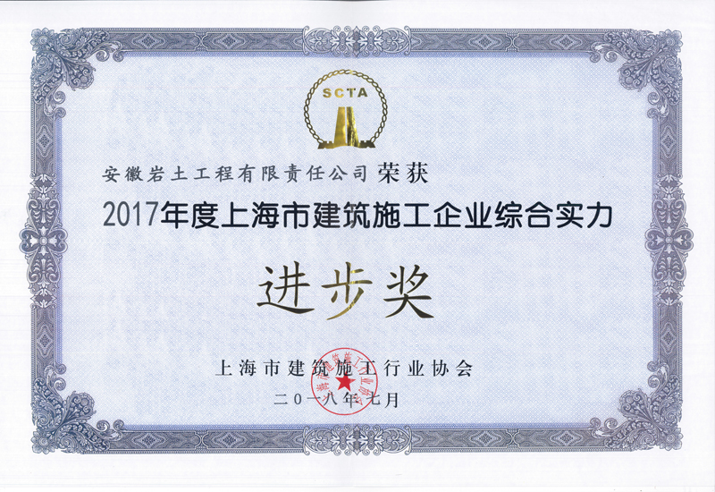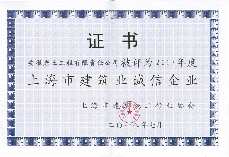 8月14日下午,从上海市建筑施工协会年度颁奖大会上传来好消息,我队安徽岩土工程有限责任公司凭借良好的品牌信誉与自身的综合实力,获得“上海市建筑业诚信企业”称号,这是连续十一年获得该项荣誉;同时也再次斩获“上海市建筑施工企业综合实力进步奖”。