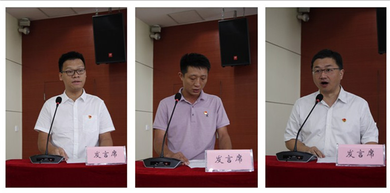 优秀共产党员代表王延明、汪铭祥、王珩洁发言
