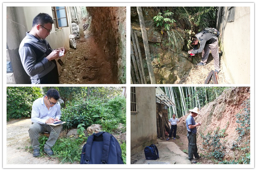 队地质技术服务中心和生态地质环境所自接到任务后,积极与省自然资源厅、市、县自然资源局相关部门对接,根据省自然资源厅下达的《安徽省2019年地质灾害隐患全面深入排查工作方案》部署,立即划分片区开展合肥市地灾排查工作。其中,合肥市区、肥西县、庐江县的排查工作由队地质技术服务中心负责;巢湖市、肥东县、长丰县的排查工作由队生态地质环境所负责。本次排查工作时间紧、任务重,严格按照“横向到边、纵向到底、不留死角”的要求,“拉网式”进行地质灾害隐患全面深入排查。连日来,野外一线人员发扬地质“三光荣精神”,不怕苦不怕累,连续战高温,对调查范围内所有农村村民切坡建房进行全面排查,重点分析坡体稳定性及评估风险,提出处置建议和防治对策等,做到一点一卡,并逐户登记造册。每天傍晚结束野外工作回到驻地,还组织集中业务培训、技术讨论并归纳整理调查资料,便于后期进行编制调查成果报告、完善市级切坡建房数据库、编制市级调查成果图。