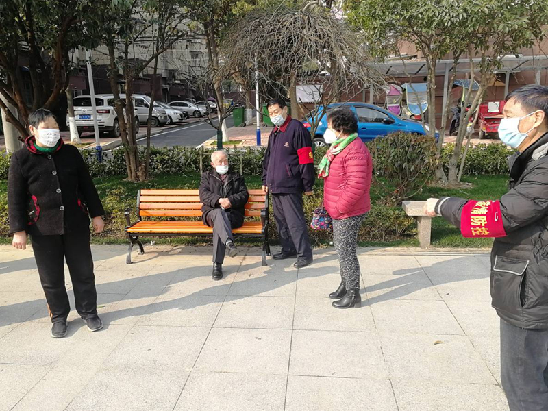 “疫情发生以来,老党员们防控疫情的积极性都很高,”离退休管理科负责人曹杰玲说,“大家纷纷报名做志愿者!4个离退休党支部的老党员们成立了疫情防控宣传劝导队,每天4个人值班巡逻。”