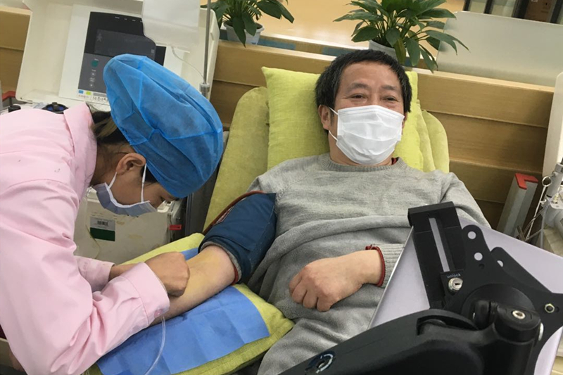 全国无偿献血奉献奖金奖获得者、“合肥好人”、我队退休职工耿志超正在献血